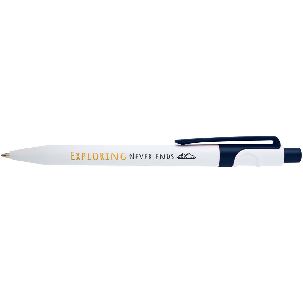Der Unica Kugelschreiber mit blauer Tinte wird aus recyceltem Kunststoff hergestellt, wodurch der Bedarf an neuem Kunststoff reduziert wird. Schreibspitze: 1 mm. Schreiblänge: 1000 Meter.