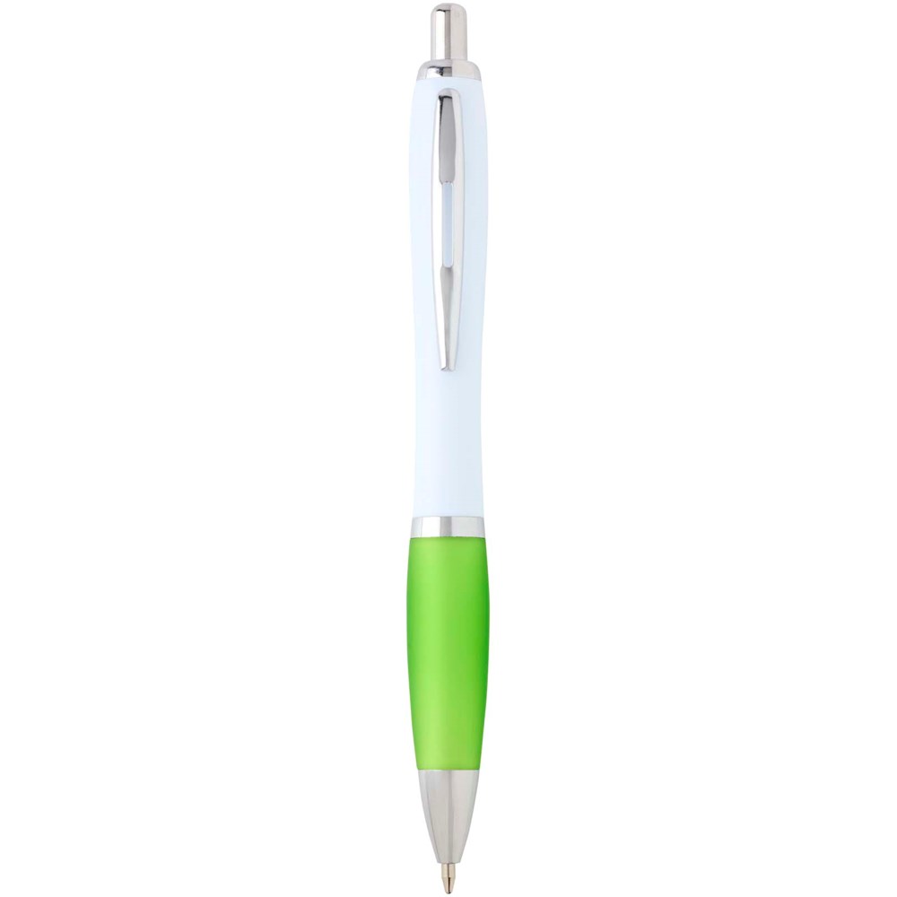 Der Nash Kugelschreiber besitzt ein elegantes, geschwungenes Design und einen weichen Griff. Er besteht aus recyceltem Kunststoff, der hart und stabil ist und dadurch eine lange Lebensdauer hat. Tintenfarbe: Blau. Schreiblänge: 1000 Meter. Schreibspitze: 1 mm.