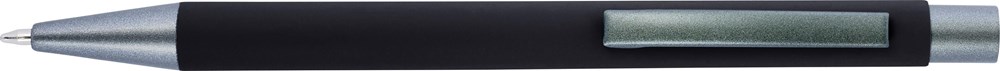 Kugelschreiber mit Softtouch-Oberfläche. Der Knopf, der Clip und Spitze sind farblich zueinander passend. Kann nur in Schwarz, Weiß, Silber und Gold bedruckt werden. Mit blauer Mine.
