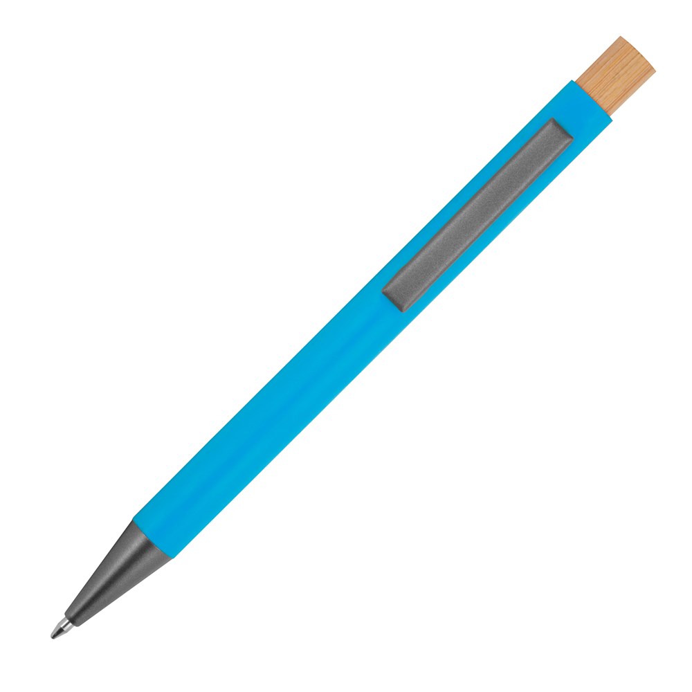 Unser Kugelschreiber aus recyceltem Aluminium kombiniert ein modernes Design mit hochwertigen Materialien. Der Bambusdrücker und der Metallclip setzen elegante Akzente, während die blau schreibende Großraummine für ein langanhaltendes und angenehmes Schreibgefühl sorgt. Der Kugelschreiber ist leicht, robust und ideal für den täglichen Gebrauch. Ihre Werbung wird rechts vom Clip präzise graviert und präsentiert Ihre Marke dezent und stilvoll.