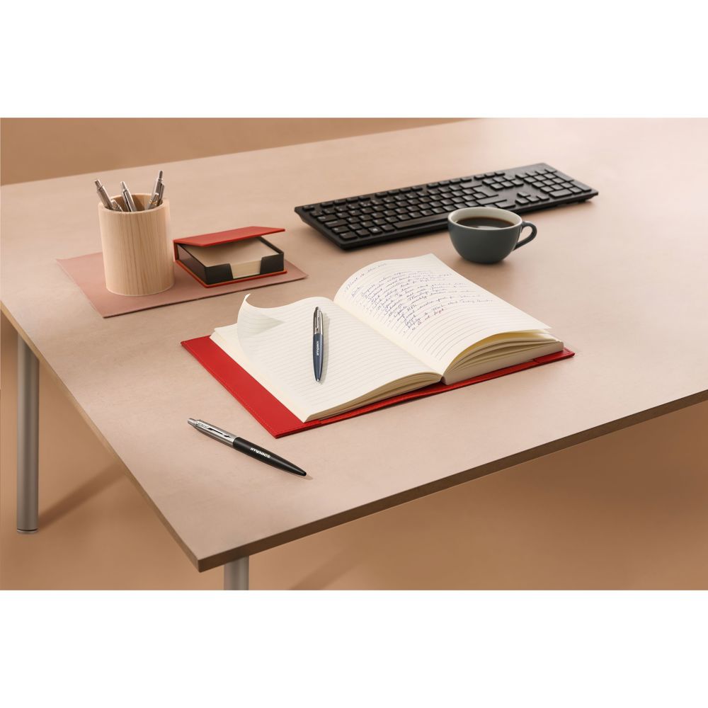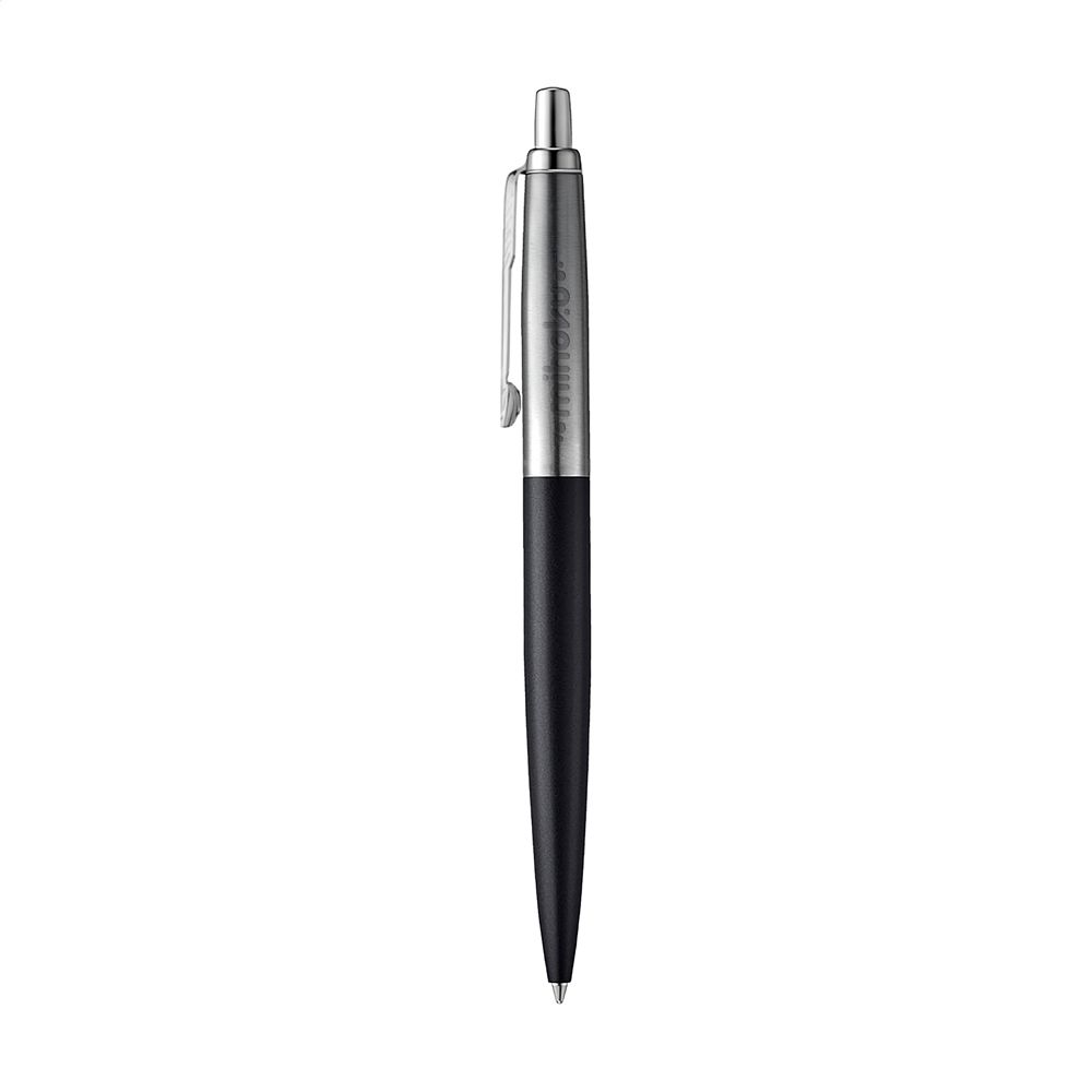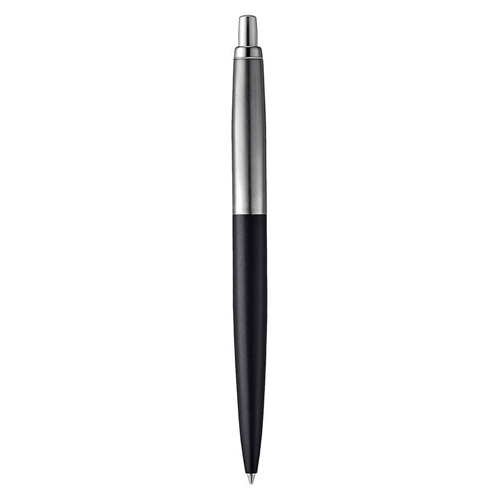 Blau schreibender Kugelschreiber der Marke Parker. Mit Kunststoffhülle. Oberteil, Druckknopf und Pfeilclip bestehen aus Edelstahl. Diese XL-Ausführung bietet alle Merkmale des ikonischen Jotter, ist jedoch größer gestaltet. Länge und Durchmesser sind um 7% erhöht, was ein angenehmes Schreibgefühl für alle bietet, die einen größeren Kugelschreiber bevorzugen. Ausgestattet mit einer Parker-Mine für ein geschmeidiges Schreibgefühl. Ein stilvolles und funktionales Schreibgerät, perfekt für den täglichen Gebrauch. Geliefert in einer Parker-Geschenkbox. Hergestellt in Europa.