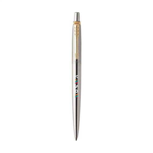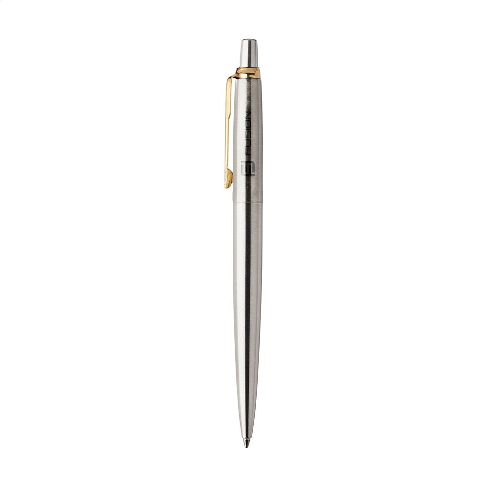 Blau schreibender Kugelschreiber der Marke Parker. Mit matter Hülle aus recyceltem Edelstahl und... mehr