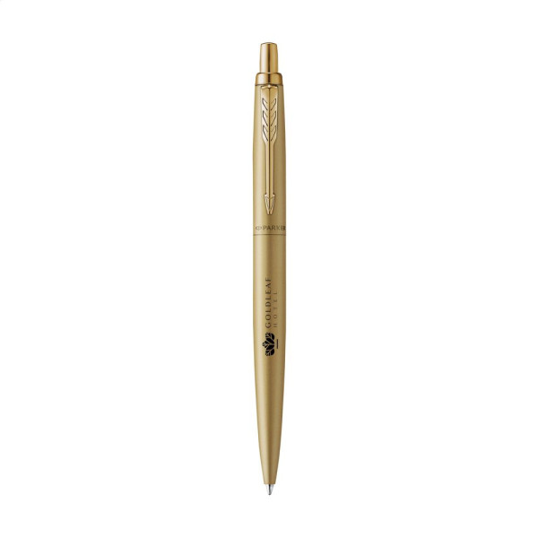 Blau schreibender Kugelschreiber der Marke Parker. Erhältlich in einem vollständig goldfarbenen oder roségoldfarbenen Edelstahlgehäuse mit mattem Gehäuse und glänzenden Metallakzenten wie dem Druckknopf und dem ikonischen federnden Pfeilclip. Diese XL-Ausführung bietet alle Merkmale des ikonischen Jotter, ist jedoch größer gestaltet. Länge und Durchmesser sind um 7% erhöht, was ein angenehmes Schreibgefühl für alle bietet, die einen größeren Kugelschreiber bevorzugen. Ausgestattet mit einer Parker-Mine für ein geschmeidiges und gleichmäßiges Schreibgefühl. Ein elegantes und exklusives Modell, das durch seine raffinierte Optik und stilvolle Farbauswahl besticht. Geliefert in einer Parker-Geschenkbox. Hergestellt in Europa.