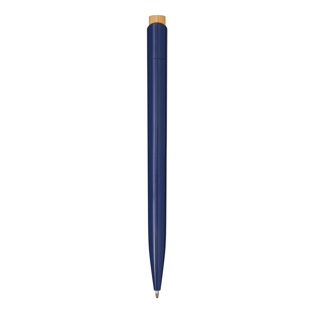 Kugelschreiber BAPU: mit Schaft aus recyceltem Kunststoff, Drücker aus Bambus, Druckmechanismus, blauschreibend