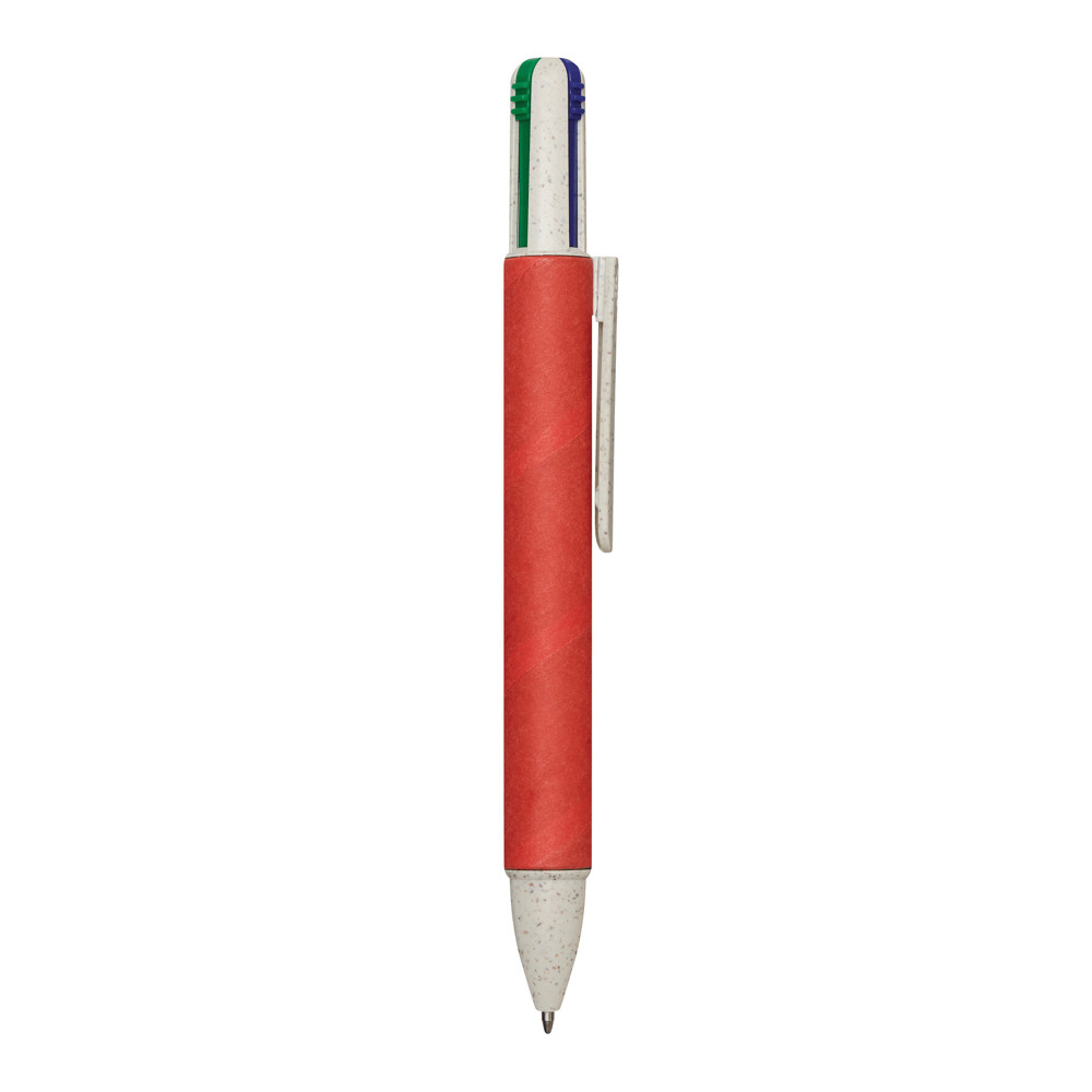 Kugelschreiber MUCO, vierfarbig: aus Weizenstroh/ABS, Schaft ummantelt mit recyceltem Karton, Druckmechanismus, Kugelschreiberminen in schwarz-, rot-, blau- und grünschreibend