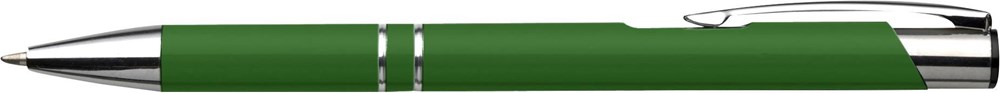 Kugelschreiber aus Aluminium, farbig lackiert, mit Metall-Clip, Zierringen aus Metall und blauer Mine. Ausgestattet mit deutscher Dokumententinte.
