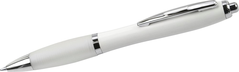 Kugelschreiber aus recyceltem ABS mit Gummigriff. Blaue Tinte.
