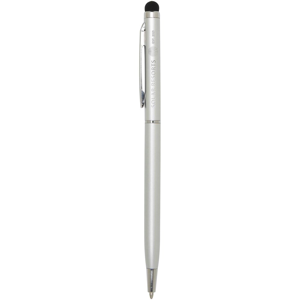 Diese vielseitige Kombination aus Kugelschreiber und Stylus ist aus robustem Aluminium gefertigt. Der Kugelschreiber bietet ein angenehmes Schreibgefühl und der integrierte Stylus eignet sich perfekt für die präzise Navigation auf Touchscreens. Tintenfarbe: Blau. Schreiblänge: 1000 Meter. Schreibspitze: 1,0 mm.