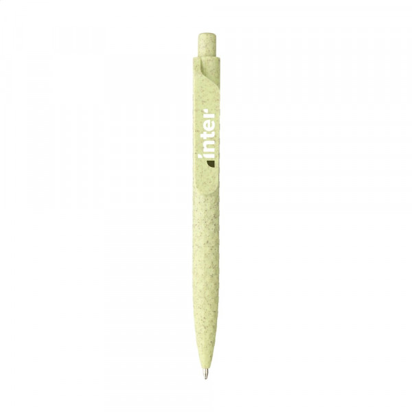 Umweltfreundlicher, blauschreibender Kugelschreiber, hergestellt aus 60% Weizenstroh und 40% ABS. Griff, Clip und Druckknopf sind aus den Resten geernteter Weizenstängel gefertigt. Mit großzügigem Clip für auffälligen Aufdruck.