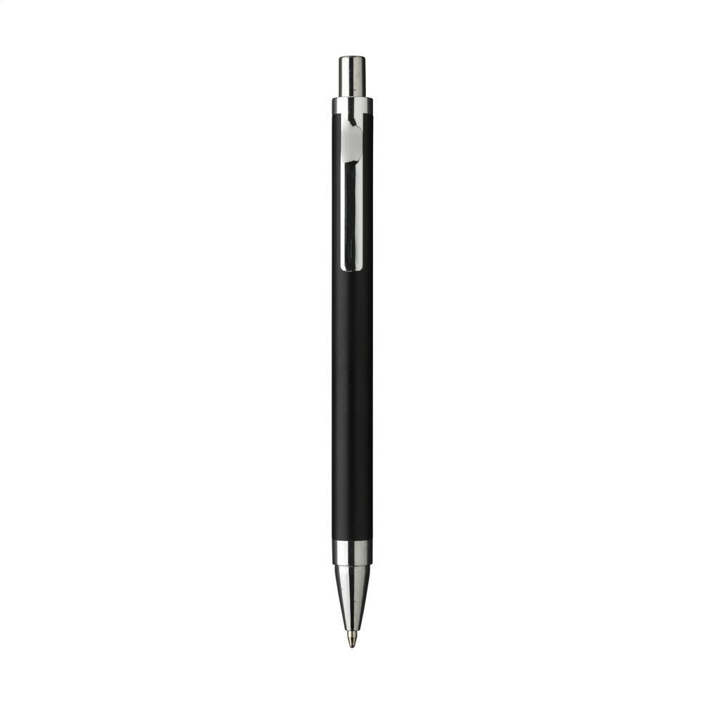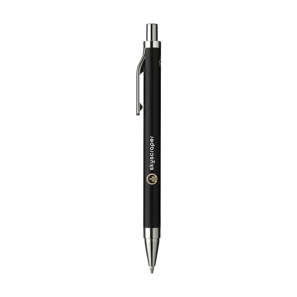 Modischer, blauschreibender Kugelschreiber mit einem Gehäuse aus 100% recyceltem Aluminium mit mattem Finish. Mit formschönem Metallclip und Gehäuse aus einem Stück. RCS-zertifiziert. Durch die Verwendung von recyceltem Aluminium werden bei der Herstellung dieses Produkts weniger neue Rohstoffe verwendet. Das bedeutet weniger Energieverbrauch und weniger Wasserverbrauch.