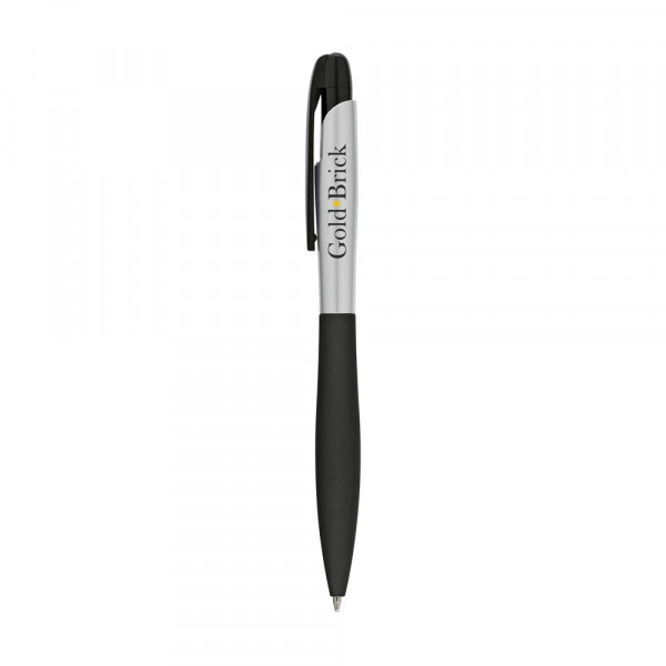 Blauschreibender, schlanker Kugelschreiber mit grifffestem, gummiertem Vorderteil. mehr