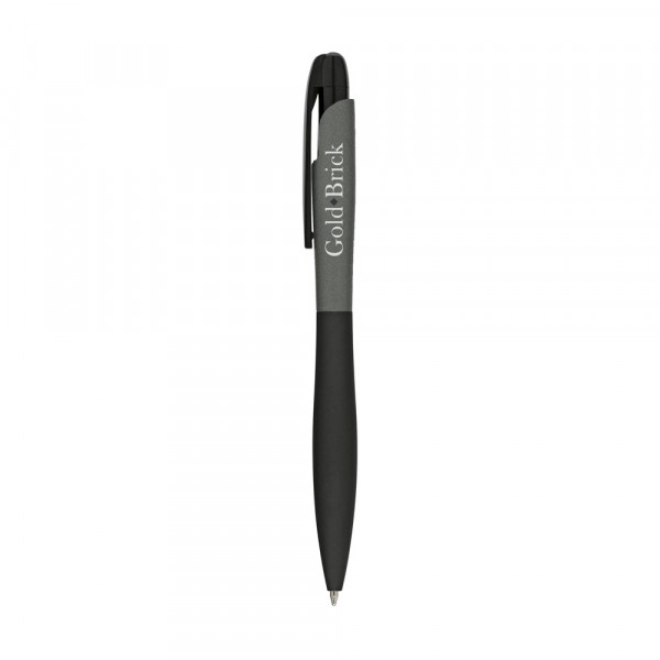 Blauschreibender, schlanker Kugelschreiber mit grifffestem, gummiertem Vorderteil. mehr