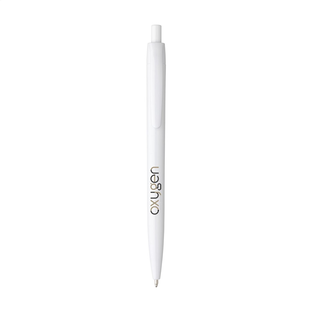 Blauschreibender Kugelschreiber mit einteiligem Gehäuse. Sehr gut geeignet für einen großzügigen Aufdruck.