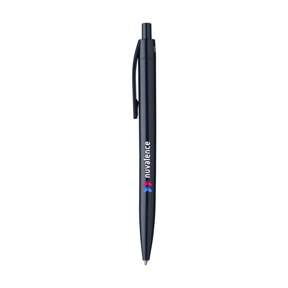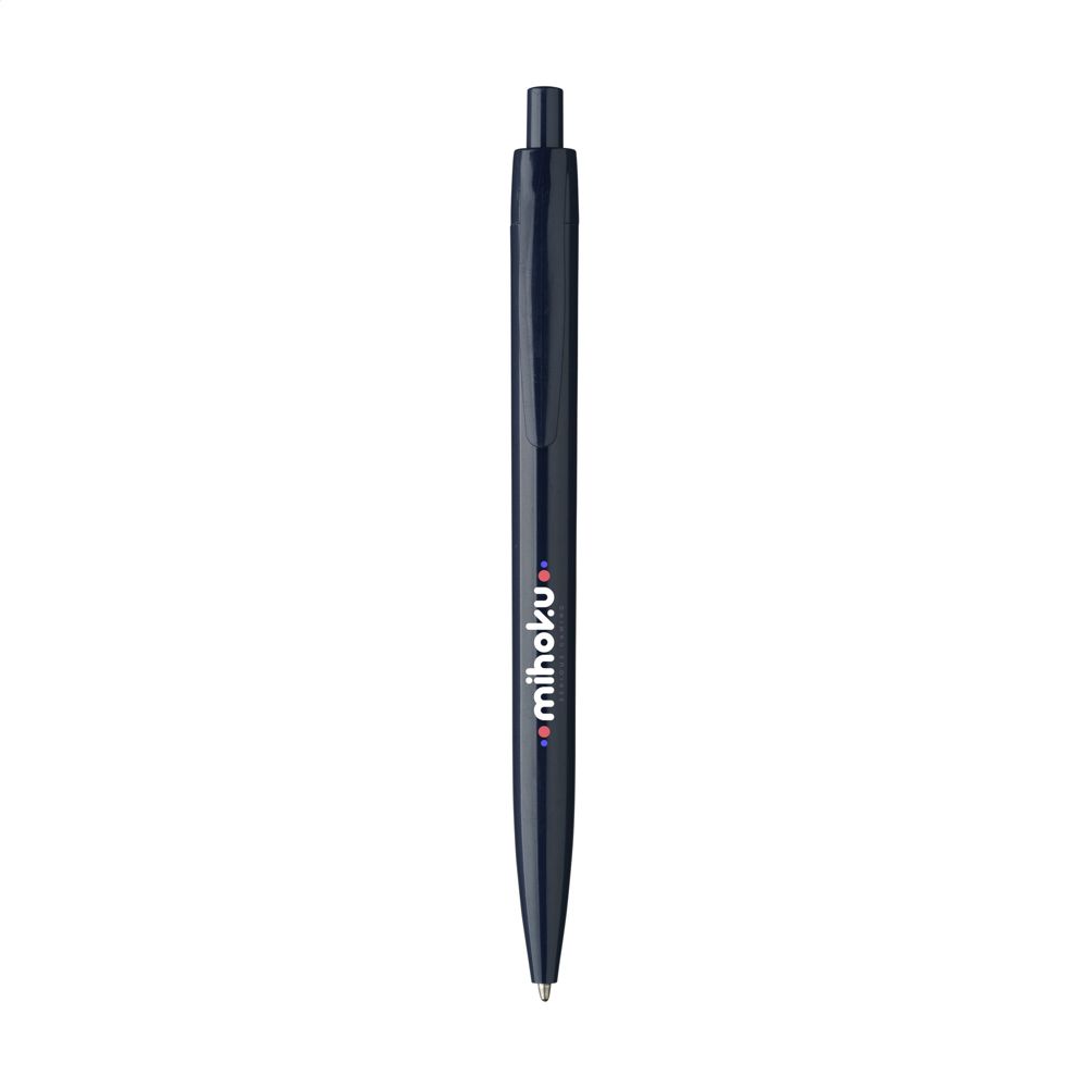Blauschreibender Kugelschreiber mit einteiligem Gehäuse. Sehr gut geeignet für einen großzügigen Aufdruck.