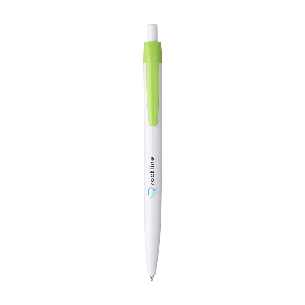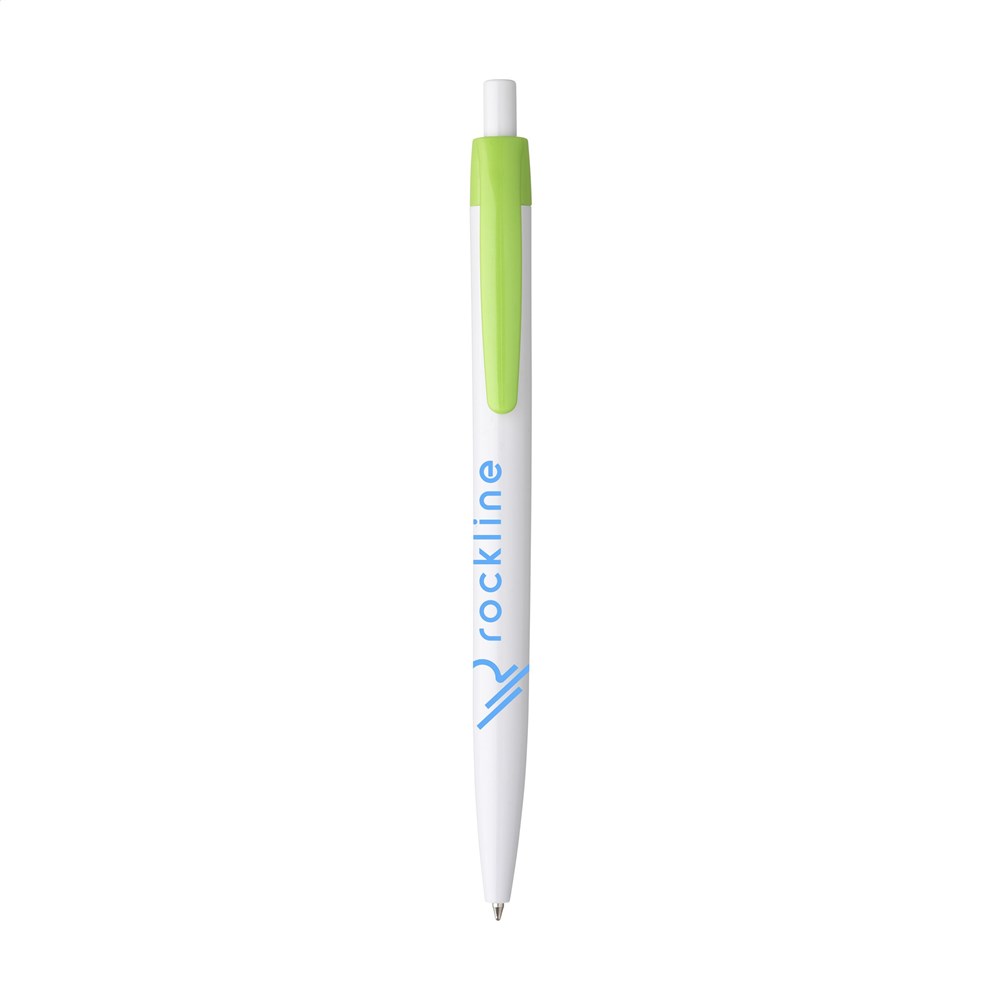 Blauschreibender Kugelschreiber mit einteiligem Gehäuse. Sehr gut geeignet für einen großzügigen Aufdruck.
