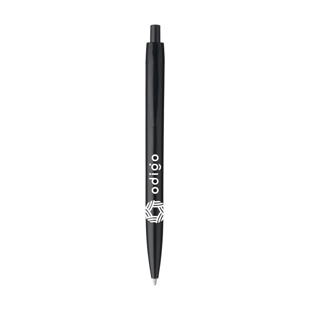 Blauschreibender Kugelschreiber mit einteiligem Gehäuse. Sehr gut geeignet für einen großzügigen Aufdruck.