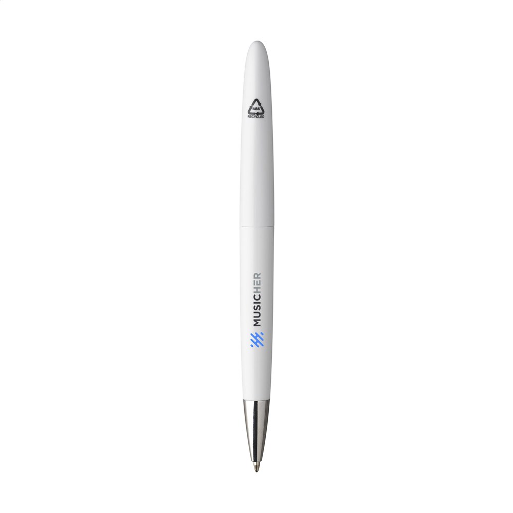 Blauschreibender Kugelschreiber. Das Gehäuse besteht zu 100% aus recyceltem ABS. Mit formschöne Clip und Dreh-Klicksystem. GRS-zertifiziert.