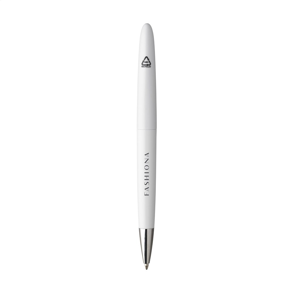 Blauschreibender Kugelschreiber. Das Gehäuse besteht zu 100% aus recyceltem ABS. Mit formschöne Clip und Dreh-Klicksystem. GRS-zertifiziert.