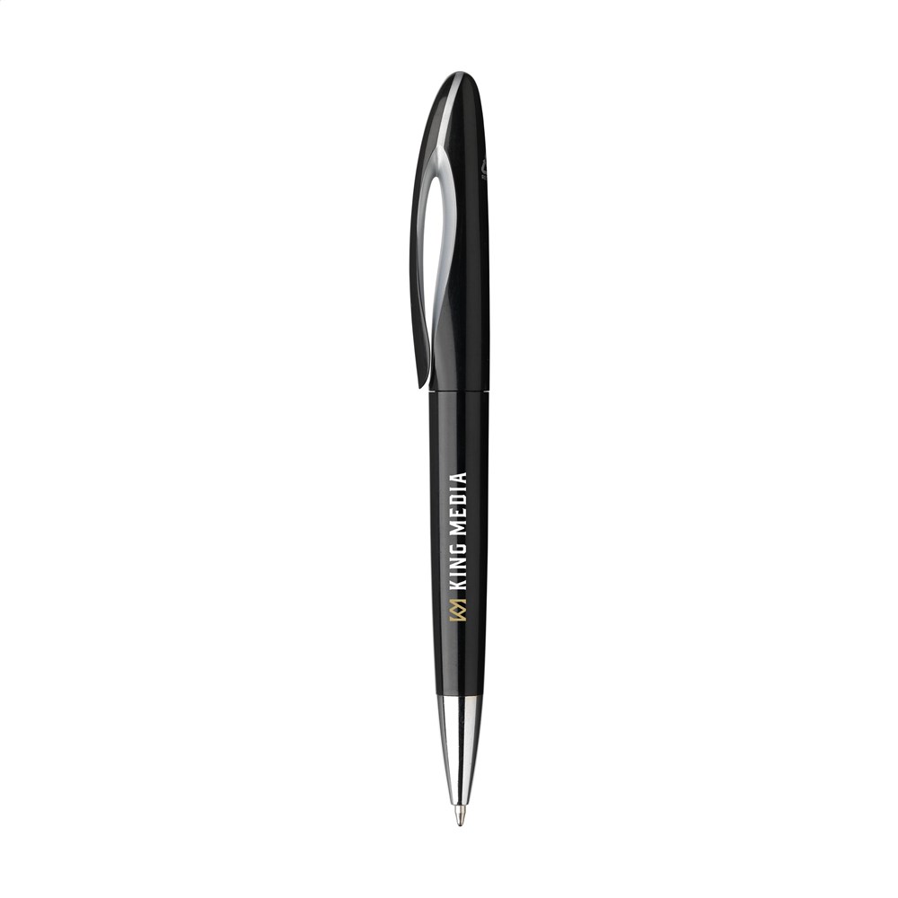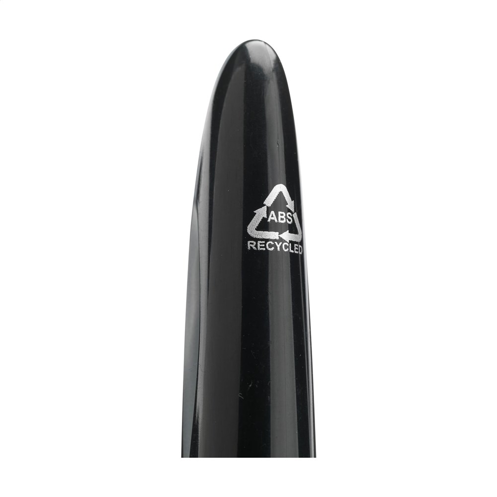 Blauschreibender Kugelschreiber. Das Gehäuse besteht zu 100% aus recyceltem ABS. Mit formschöne Clip und Dreh-Klicksystem. GRS-zertifiziert.