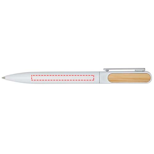 Der Blanca Kugelschreiber hat einen oberen Schaft aus recyceltem Kunststoff mit einer farbigen Sprühbeschichtung und Bambusaccessoires auf beiden Seiten. Der untere Teil des Schafts besteht aus recyceltem Aluminium mit einer farbigen Pulverbeschichtung. Tintenfarbe: Blau. Schreiblänge: 400 Meter. Strichstärke: 1,0 mm.
