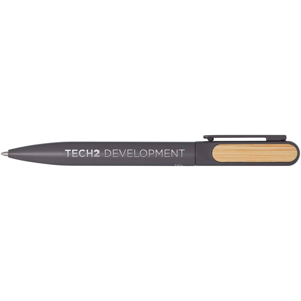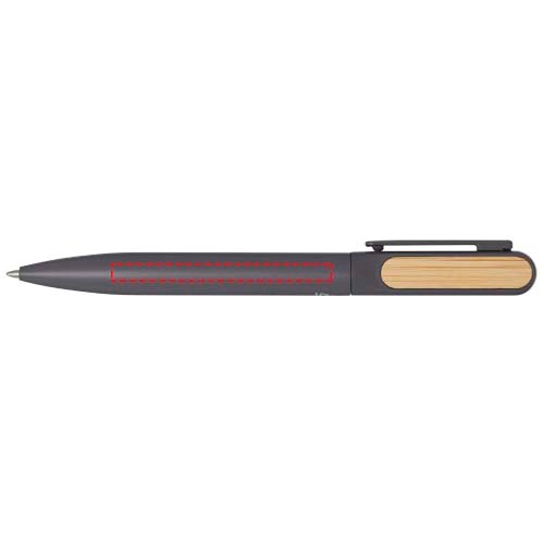 Der Blanca Kugelschreiber hat einen oberen Schaft aus recyceltem Kunststoff mit einer farbigen Sprühbeschichtung und Bambusaccessoires auf beiden Seiten. Der untere Teil des Schafts besteht aus recyceltem Aluminium mit einer farbigen Pulverbeschichtung. Tintenfarbe: Blau. Schreiblänge: 400 Meter. Strichstärke: 1,0 mm.