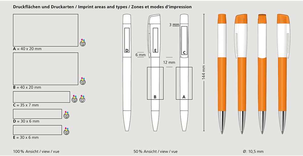 Der Turnus high gloss Mn USB 2.0 ist ein Drehkugelschreiber mit integriertem USB-Stick. USB 2.0: 4 GB-32 GB. Materialien und Oberflächen: Spitze: Messing vernickelt. Schaft, Oberteil und Kappe: Kunststoff (ABS) hochglänzend. Minenröhrchen: Recyceltes Polypropylen (rPP). Standardfarben: Schaft, Oberteil und Kappe: aus 14 Farben kombinierbar. Sonderfarben: ab 5.000 Stück, ab 25.000 Stück ohne PMS-Zuschlag. Standardmine: Silktech L (3.000 m), blau oder schwarz, Mine optional: Silktech XL, Multifill P, Multi-Gel.