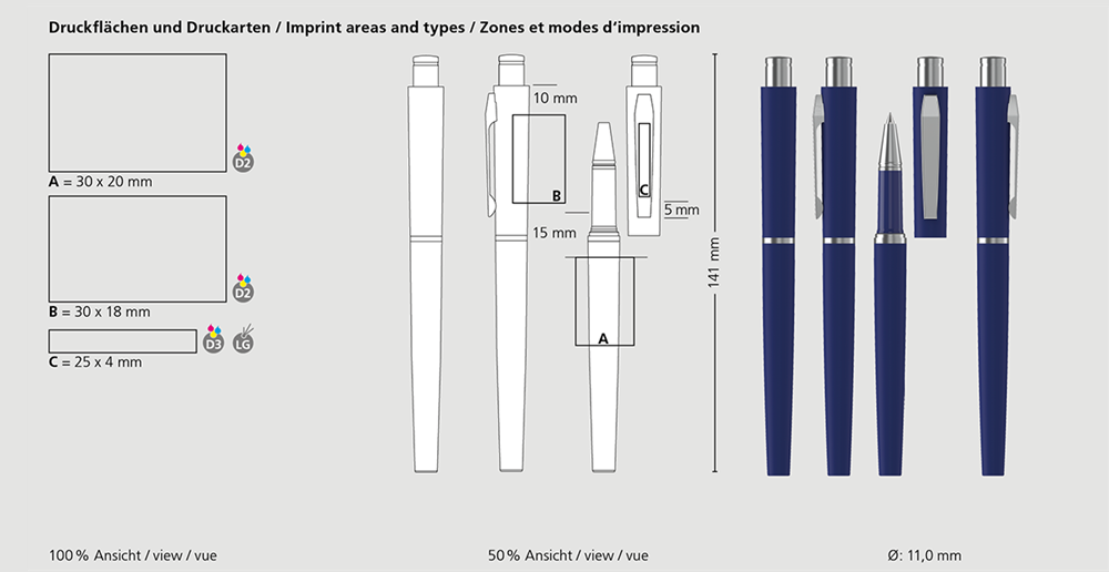 Der Snooker rollerball softtouch MS ist ein Tintenroller. Materialien und Oberflächen: Kappe und Schaft: Aluminium, gummierte Softtouch-Oberfläche. Spitze: Messing mattverchromt. Griffzone: Kunststoff (ABS) hochglänzend. Drücker und Ring: Messing mattverchromt. Klipp: Stahl mattverchromt. Standardfarben: Tintenroller: in 5 Farben erhältlich. Sonderfarben: ab 10.000 Stück, ab 25.000 Stück ohne PMS-Zuschlag. Standardmine: Rollerballmine RO-S (600 - 800 m), blau oder schwarz, Mine optional:
