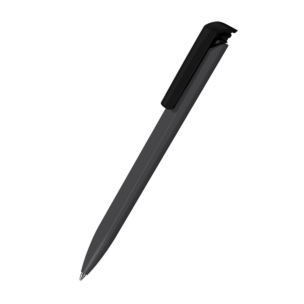 Der Trias high gloss/transparent ist ein Druckkugelschreiber. Materialien und Oberflächen: Schaft: Kunststoff (ABS) hochglänzend. Drückerklipp: Kunststoff (M-ABS) transparent. Minenröhrchen: Recyceltes Polypropylen (rPP). Standardfarben: Schaft: aus 14 Farben kombinierbar. Drückerklipp: aus 12 Farben kombinierbar. Sonderfarben: ab 5.000 Stück, ab 25.000 Stück ohne PMS-Zuschlag. Standardmine: Silktech L (3.000 m), blau oder schwarz, Mine optional: