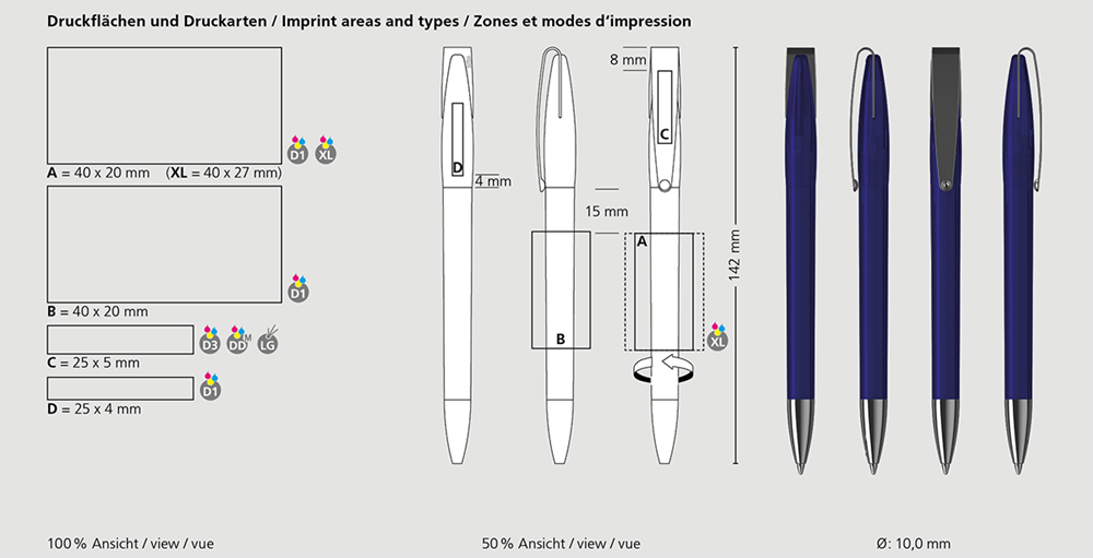 Der Cobra transparent MMn ist ein Drehkugelschreiber. Materialien und Oberflächen: Spitze: Messing vernickelt. Schaft und Oberteil: Kunststoff (M-ABS) transparent. Klipp: Federstahl vernickelt. Minenröhrchen: Recyceltes Polypropylen (rPP). Standardfarben: Schaft und Oberteil: aus 12 Farben kombinierbar. Sonderfarben: ab 5.000 Stück, ab 25.000 Stück ohne PMS-Zuschlag. Standardmine: Silktech L (3.000 m), blau oder schwarz, Mine optional: Silktech XL, Multifill P, Multi-Gel.