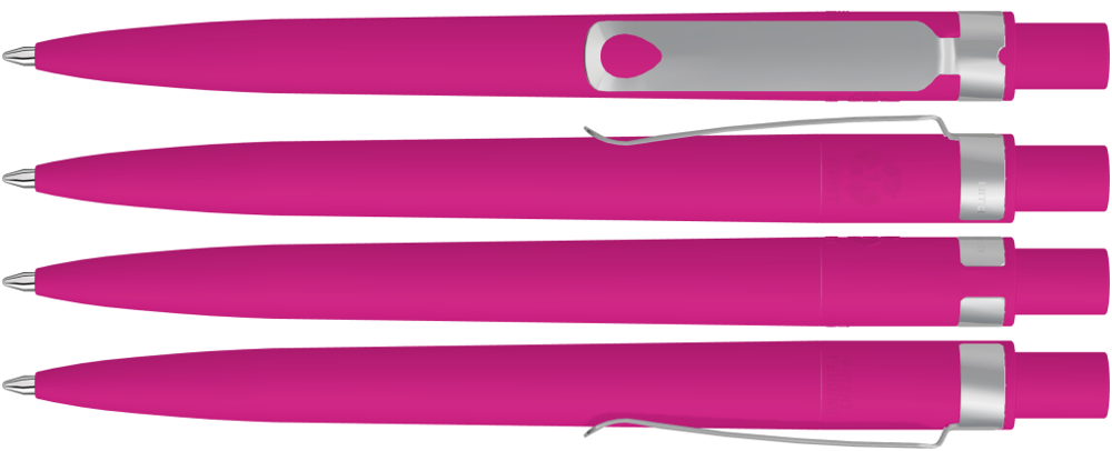Druckkugelschreiber mit gummiertem Gehäuse aus recyceltem PET-Material mit Metallclip matt verchromt.