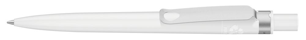 Druckkugelschreiber aus recyceltem PET-Material mit matt gedecktem Gehäuse und Metallclip matt verchromt.