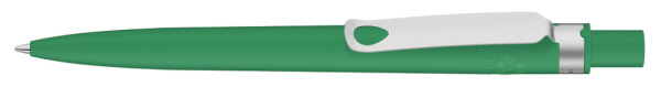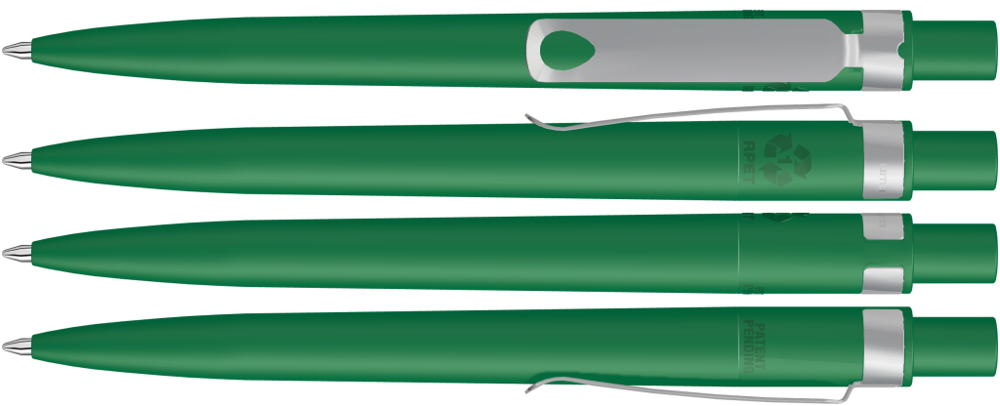 Druckkugelschreiber aus recyceltem PET-Material mit matt gedecktem Gehäuse und Metallclip matt verchromt.