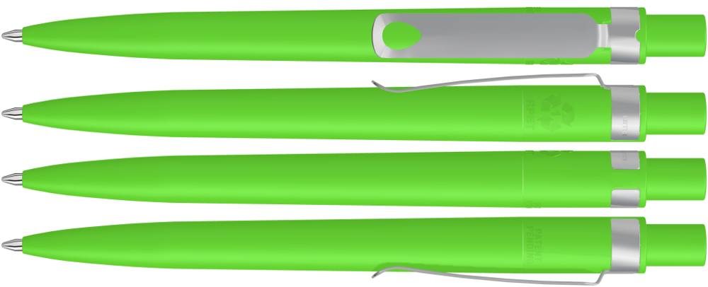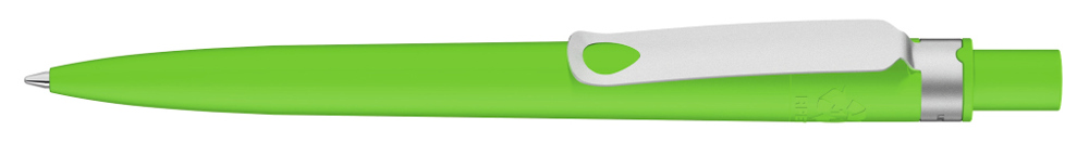 Druckkugelschreiber aus recyceltem PET-Material mit matt gedecktem Gehäuse und Metallclip matt verchromt.