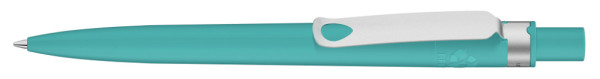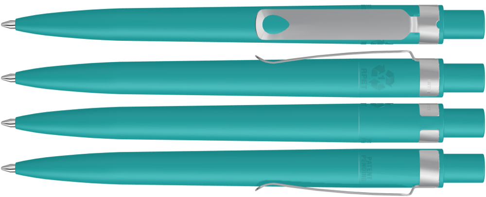 Druckkugelschreiber aus recyceltem PET-Material mit matt gedecktem Gehäuse und Metallclip matt verchromt.
