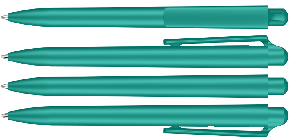 Druckkugelschreiber mit gedeckt mattem Gehäuse und Clipdrücker.