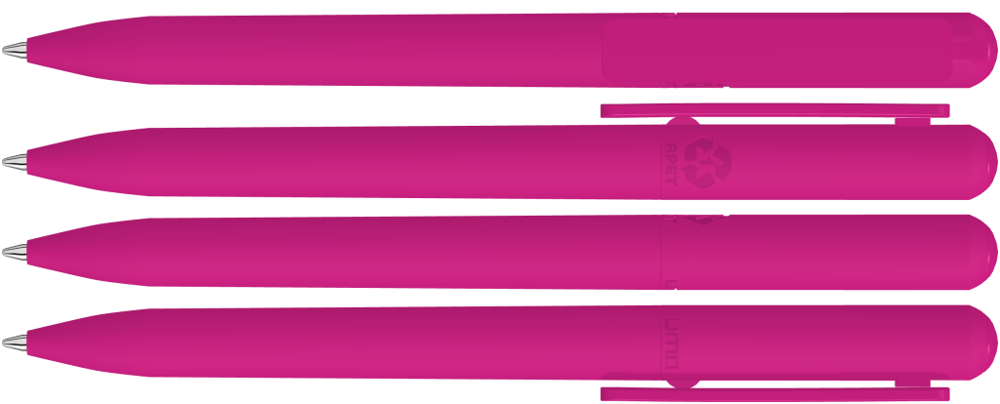 Drehkugelschreiber mit gummiertem Gehäuse aus recyceltem PET-Material mit glänzend gedecktem Clip. mehr