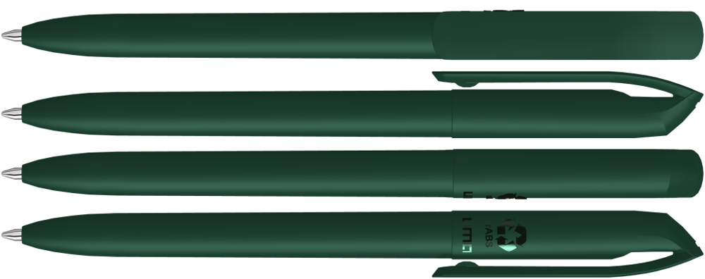 Drehkugelschreiber mit gedeckt mattem Gehäuse und Clip aus recyceltem ABS-Kunststoff. mehr