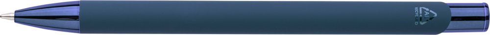 Gummierter Kugelschreiber aus recyceltem Aluminium mit glänzendem UV-Kunststoffdrücker, UV-verchromter Kunststoffspitze und UV-beschichtetem Metallclip, alles in passenden Farben. Nach der Gravur entsteht ein glänzender Spiegeleffekt in der Farbe des Stiftes. Inklusive eingraviertem Recycling-Logo. Ungefähre Schreiblänge: 800 m. Blaue Tinte.