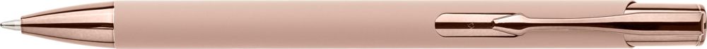 Gummierter Kugelschreiber aus recyceltem Aluminium mit glänzendem UV-Kunststoffdrücker, UV-verchromter Kunststoffspitze und UV-beschichtetem Metallclip, alles in passenden Farben. Nach der Gravur entsteht ein glänzender Spiegeleffekt in der Farbe des Stiftes. Inklusive eingraviertem Recycling-Logo. Ungefähre Schreiblänge: 800 m. Blaue Tinte.