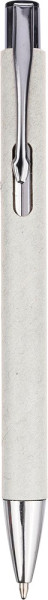 Kugelschreiber aus recyceltem Karton mit verchromten Details. Spitze und Druckknopf aus Kunststoff und Metallclip. Ca. 800 Meter Schreiblänge, Blaue Tinte.