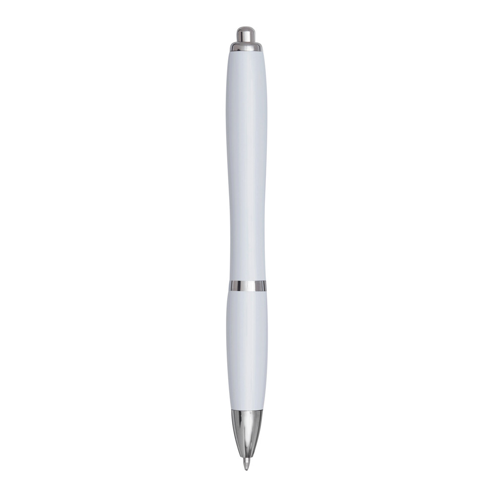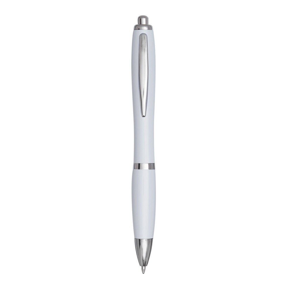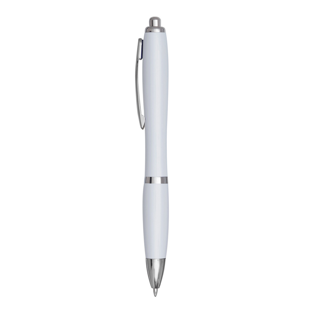 Kugelschreiber SWAYRABS: mit Schaft in taillierter Form aus recyceltem Kunststoff, gummierter Griffzone, Druckmechanismus, Großraummine, blauschreibend