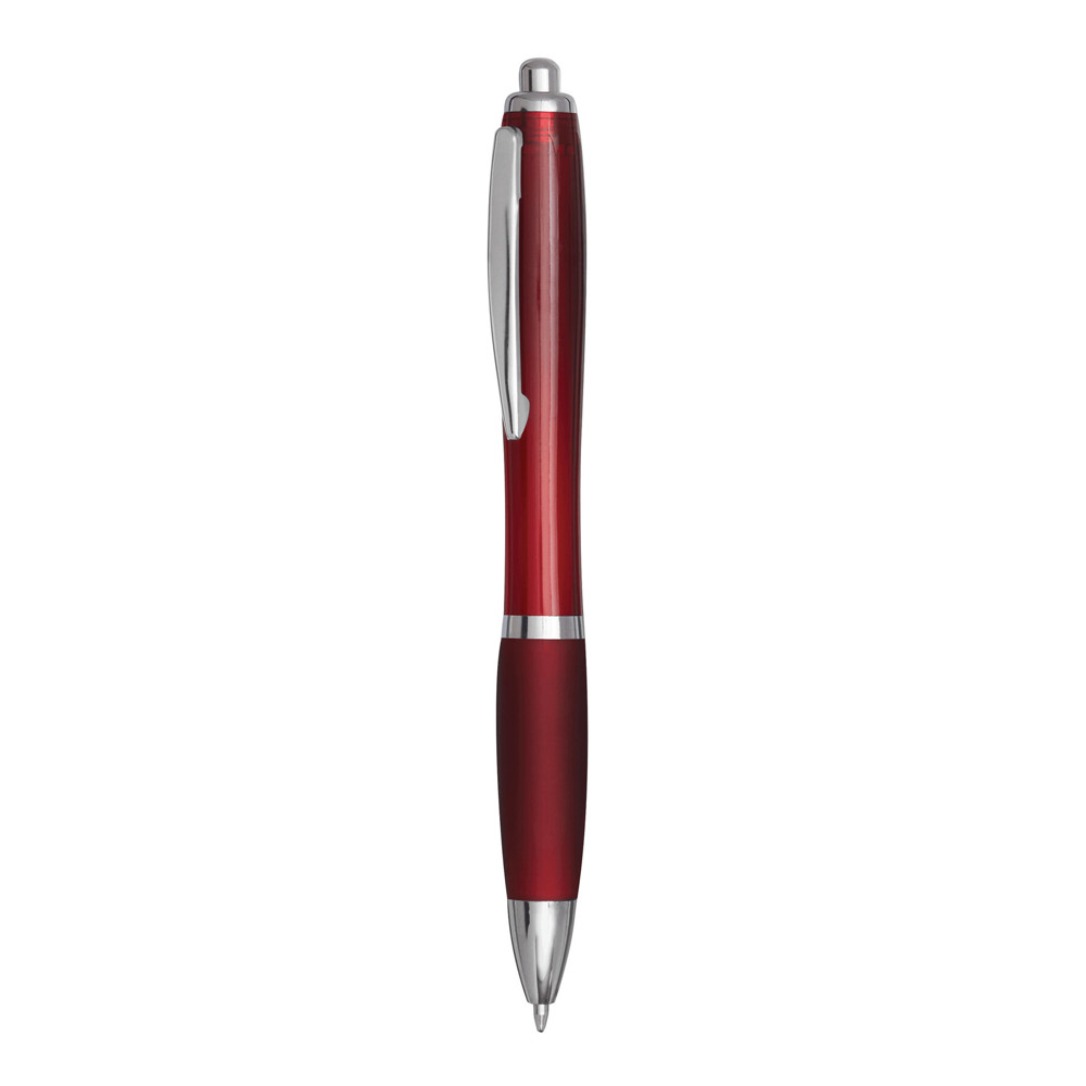 Kugelschreiber SWAYRABS: mit Schaft in taillierter Form aus recyceltem Kunststoff, gummierter Griffzone, Druckmechanismus, Großraummine, blauschreibend