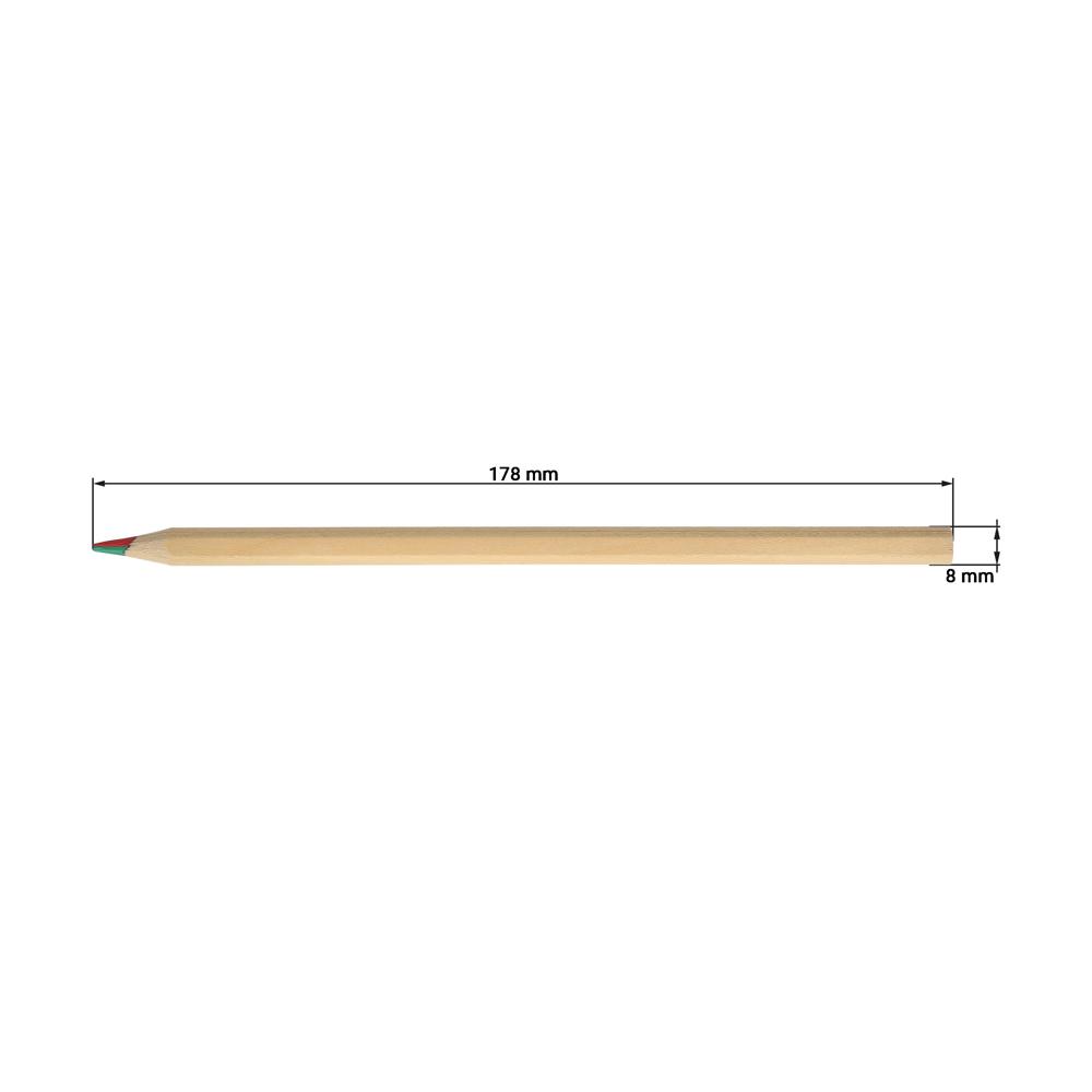 Farbstift mit Schutzlack und 4-farbiger Mine in den Farben rot, gelb, blau und grün. Durch die sechseckige Form des Stifts entstehen 6 bedruckbare Seiten.