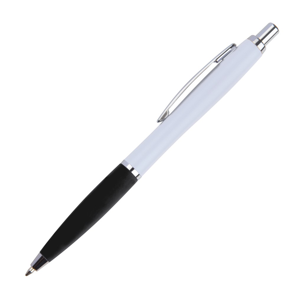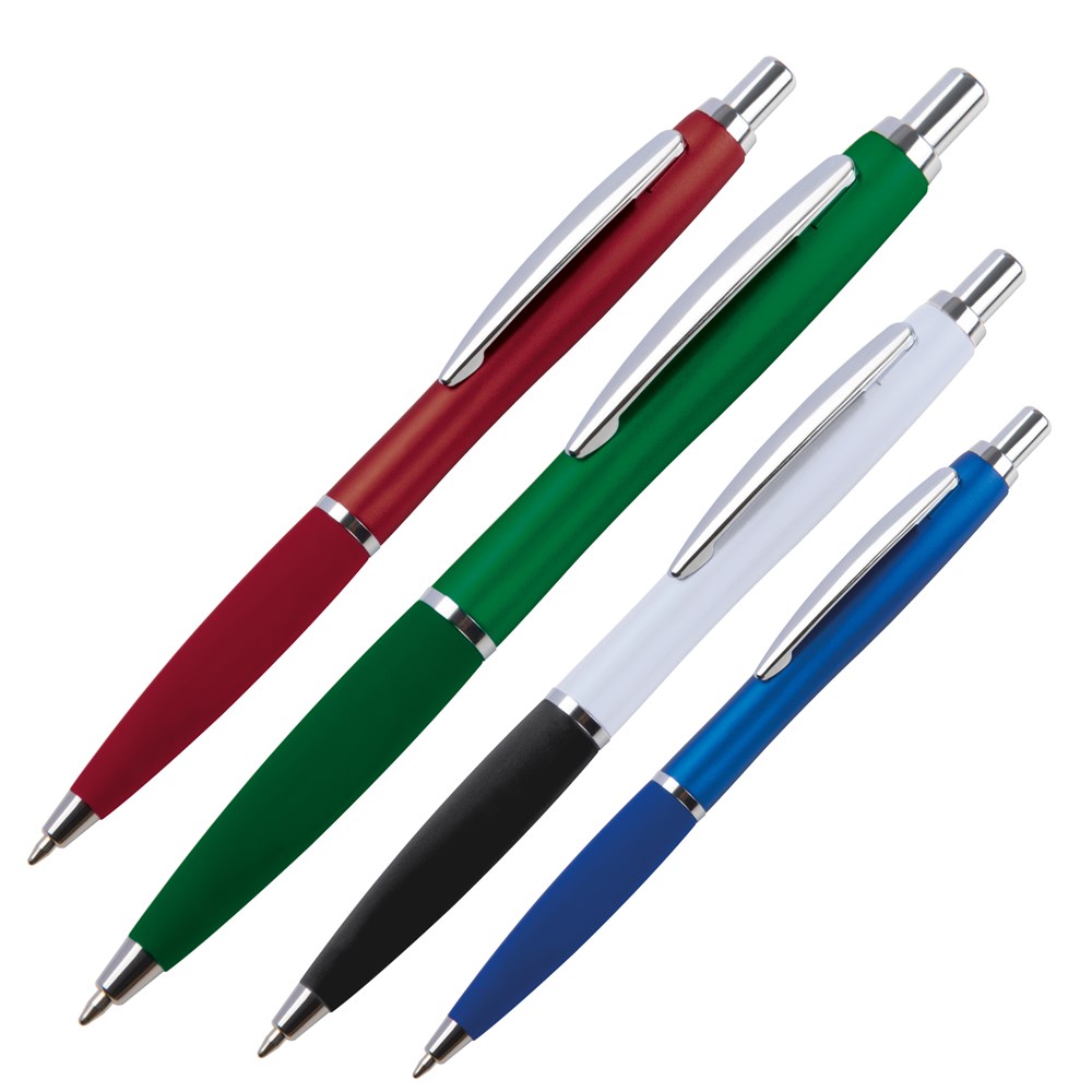 TOP PRICE! Schlanker Kugelschreiber mit blauschreibender Mine und Softtouchgriffzone. Ihre Werbung drucken wir rechts vom Clip.