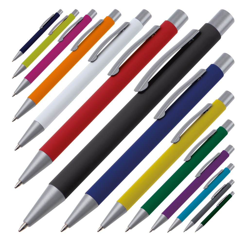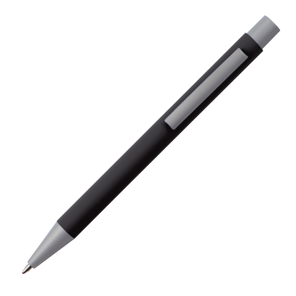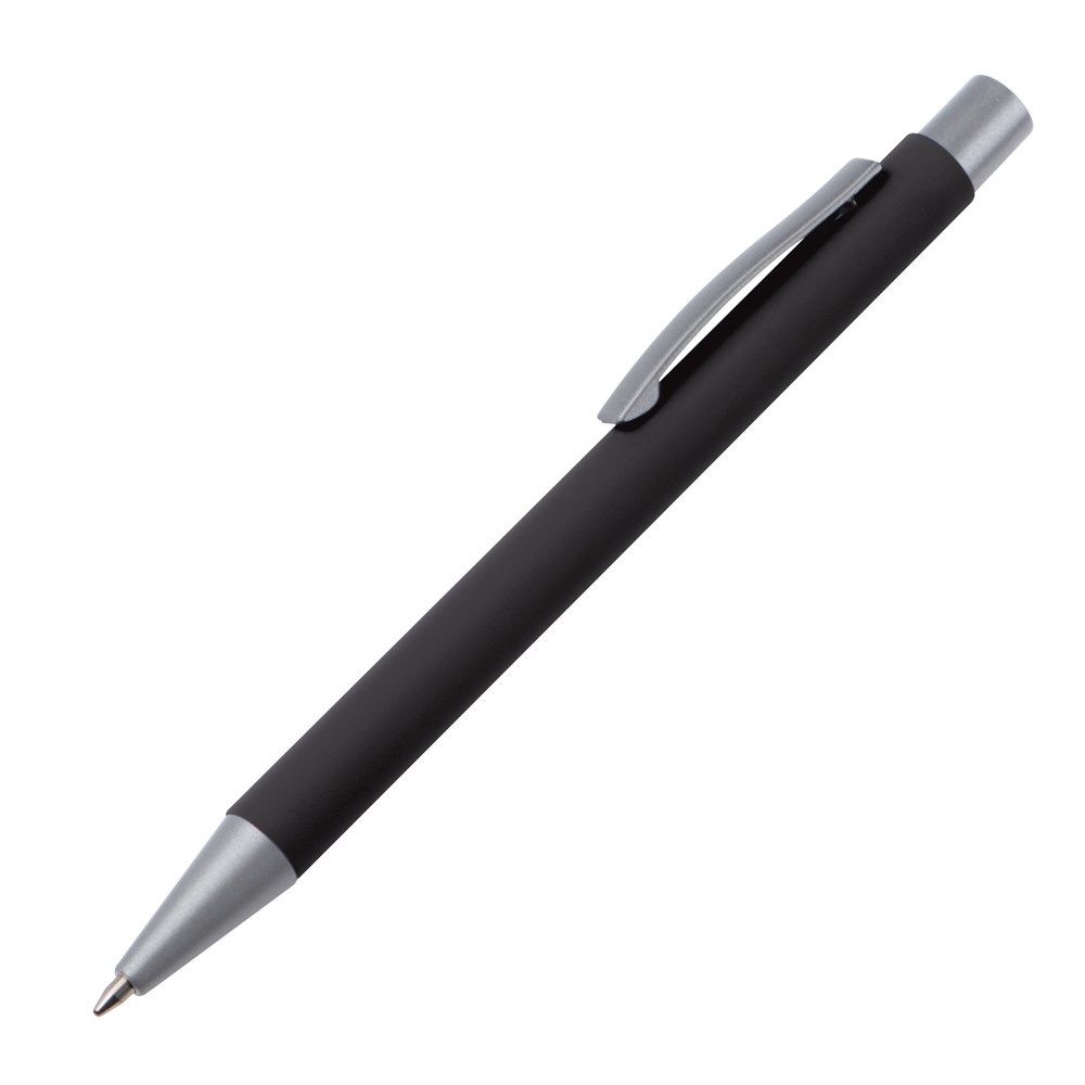 TOP PRICE! Druckkugelschreiber aus Metall mit rubber finish Oberfläche und blauschreibender Großraummine. Ihre Werbung lasern wir rechts vom Clip am Schaft.