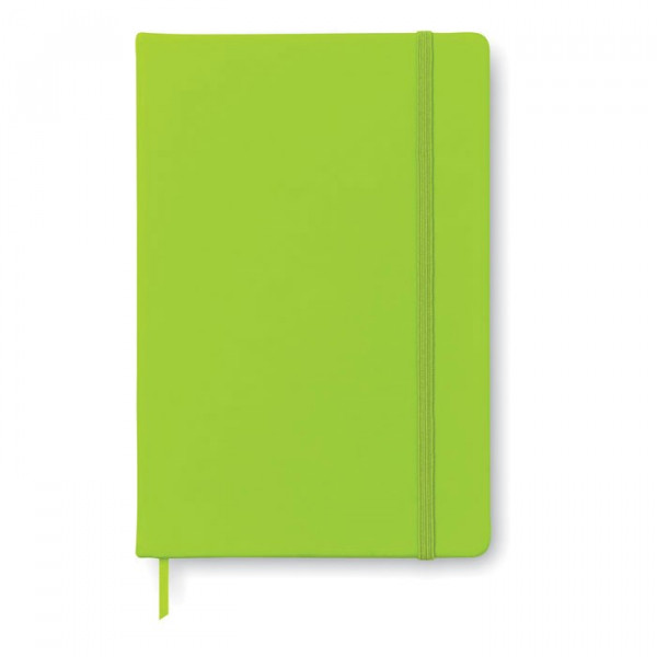 DIN A5 Notizbuch mit gebundenem Hard-Cover aus PU. 96 Blatt (192 Seiten) recyceltes Blankopapier. Elastisches Verschlussband und Lesebändchen. FSC®-certified | FSC MIX CREDIT, P7.1, FSC-C213206