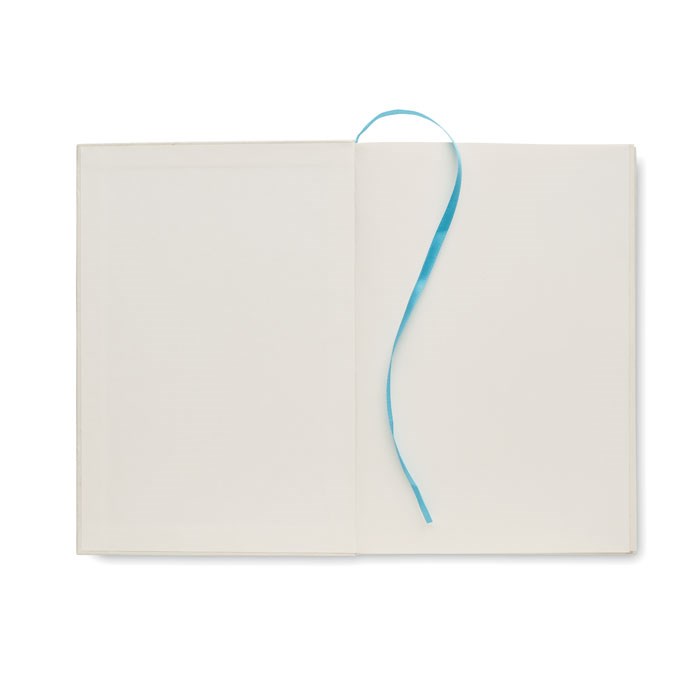 DIN A5 Notizbuch mit Hard Cover aus 70% recyceltem Milchkarton und 30% recyceltem Papier. 80 Blatt (160 Seiten) liniertes Recyclingpapier 80 g/m². Gebunden. Elastisches Verschlussband und Lesebändchen.