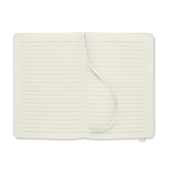 DIN A5 Notizbuch mit Cover aus 600D RPET. 80 Blatt (160 Seiten) recyceltes, liniertes Papier. Elastisches Verschlussband und Lesebändchen. FSC®-certified | FSC MIX CREDIT, P7.1, FSC-C213206