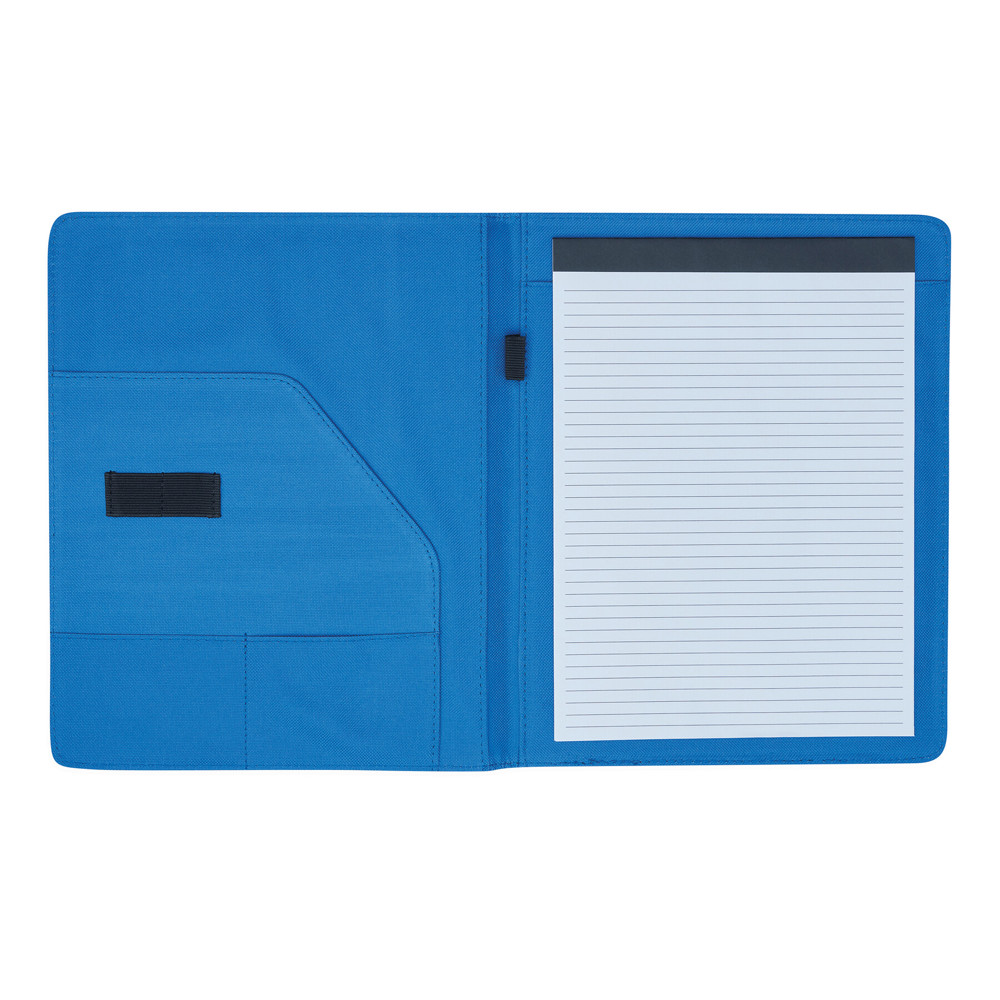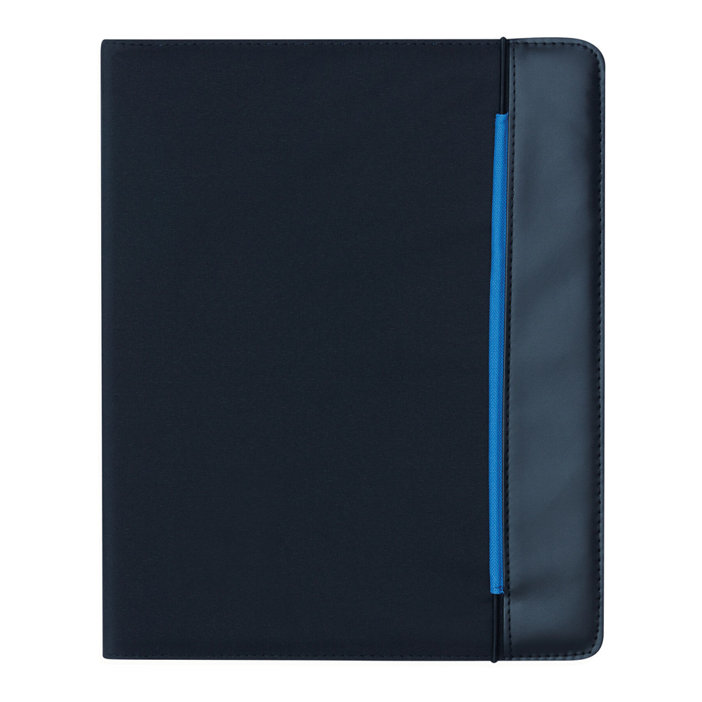 Konferenzmappe YOUNG STAR im DIN-A4-Format: Gummiband zum Verschließen, innen diverse Einsteckfächer, inkl. Schreibblock (liniert), Schlaufe für 1 Schreibgerät, innen farbig abgesetzt - außen schwarz mit farbigem Zierstreifen