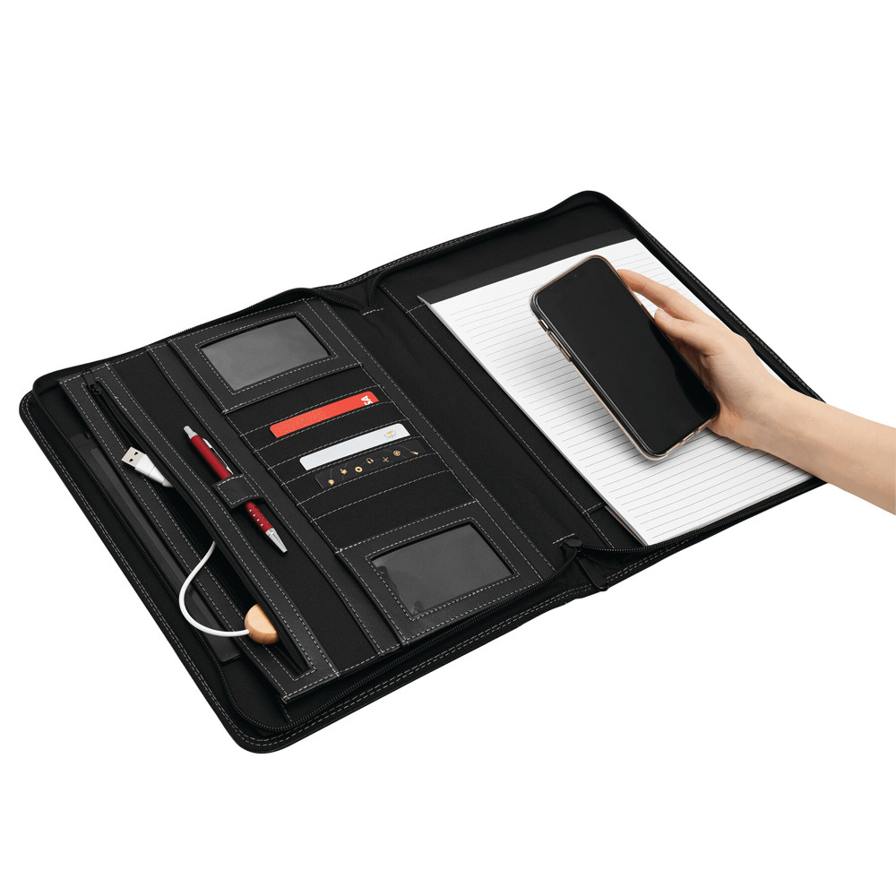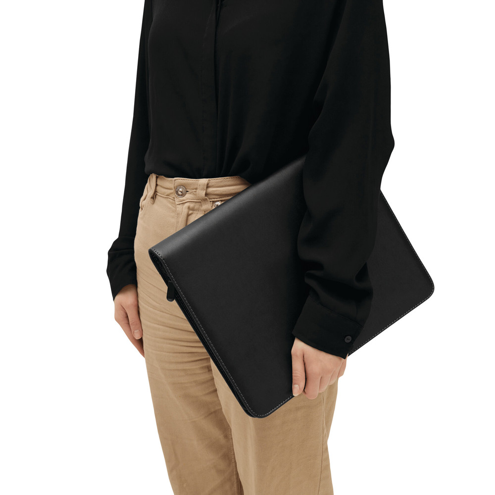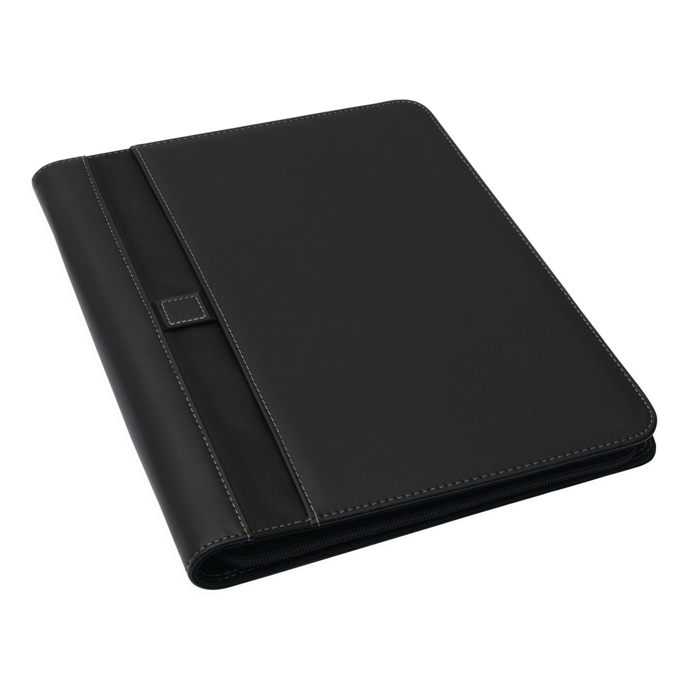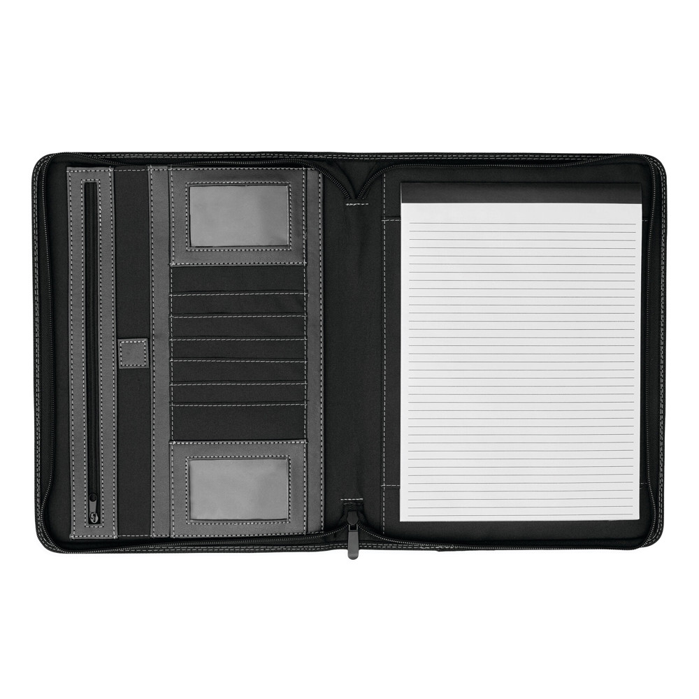 Portfolio BIG BOSS im DIN-A4-Format: umlaufender Reißverschluss zum Verschließen, innen diverse Einsteckfächer, 2 Klarsichtfächer, 1 Reißverschluss-Innenfach, inkl. Schreibblock (liniert), innen und außen mit Schlaufe für 1 Schreibgerät